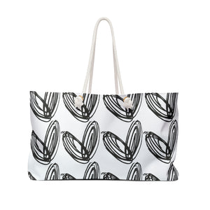 Our oversized Weekender Tote is perfect for your weekend at the beach or in town. The wide-mouthed, durable bag holds a generous amount of personal items and is easily held by its thick rope handles.